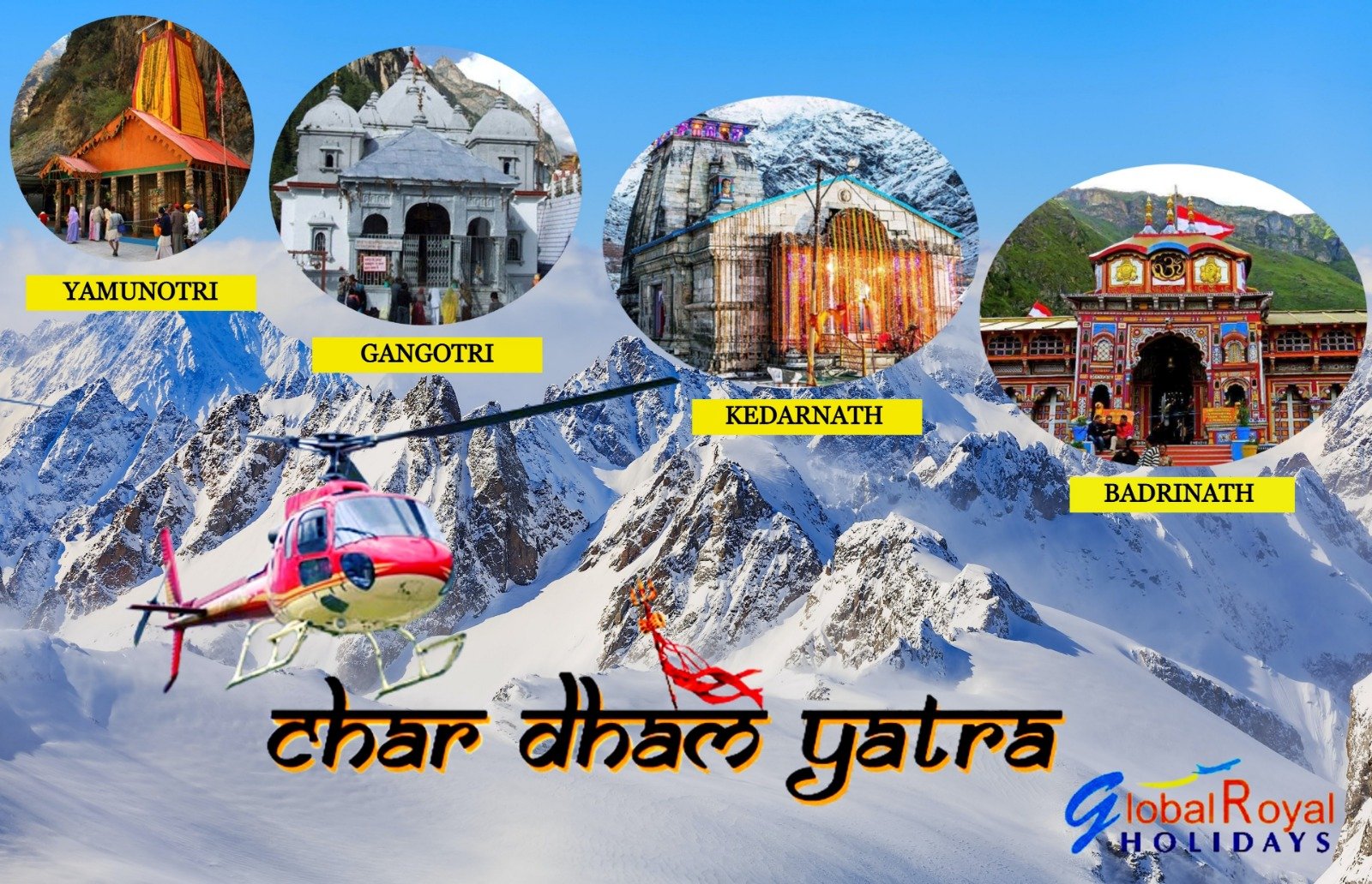 Haridwar, Yamunotri, Uttarkashi, Gangotri, Rudraprayag, Guptkashi, Gaurikund, Kedarnath, Joshimath, Badrinath, Devprayag, Panchprayag, Karnprayag